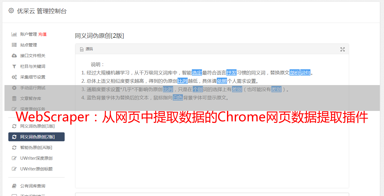 简单地说,Web Scraper是基于Chrome的网页元素解析器,可以通过可视化的单击操作提取自定义区域中的数据/元素。同时,它还提供了定时自动提取功能,可以用作一组简单的采集器工具。