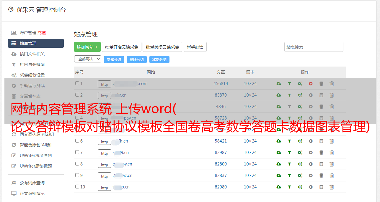 网站内容管理系统 上传word( 论文答辩模板对赌协议模板全国卷高考数学答题卡数据图表管理)
