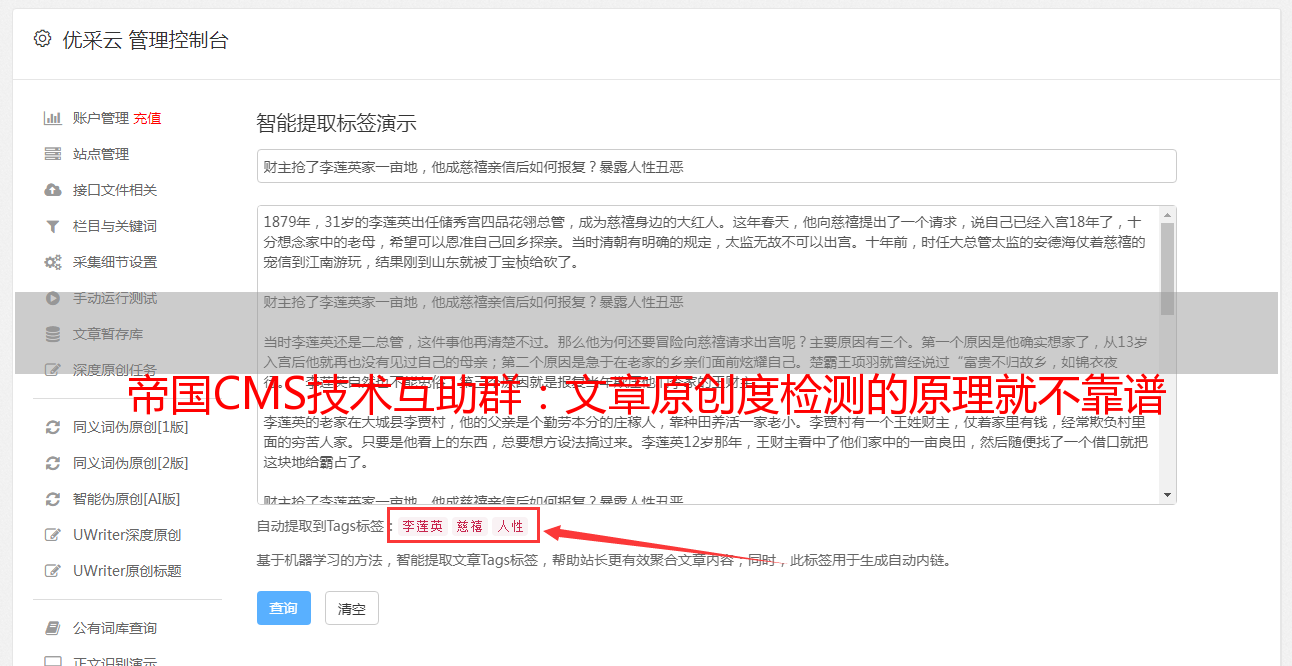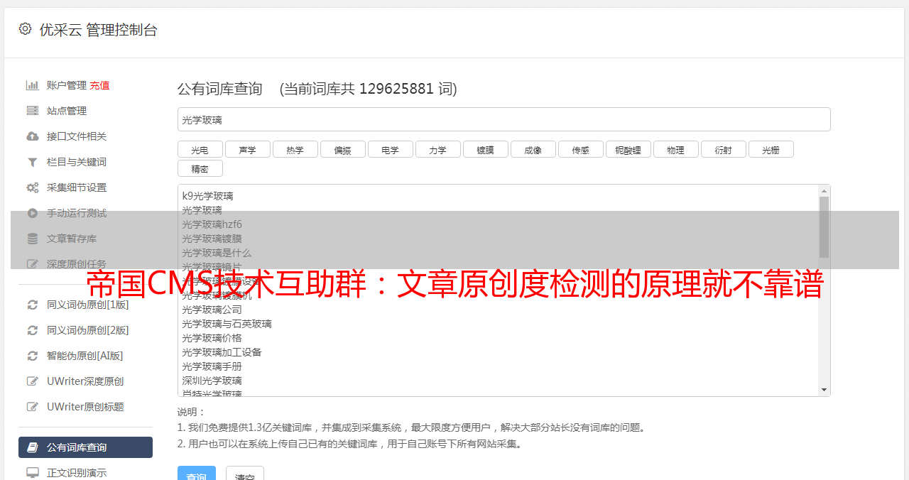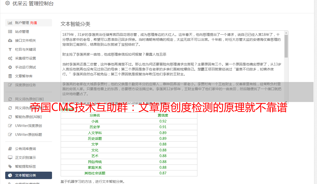 帝国CMS技术互助群:文章原创度检测的原理就不靠谱