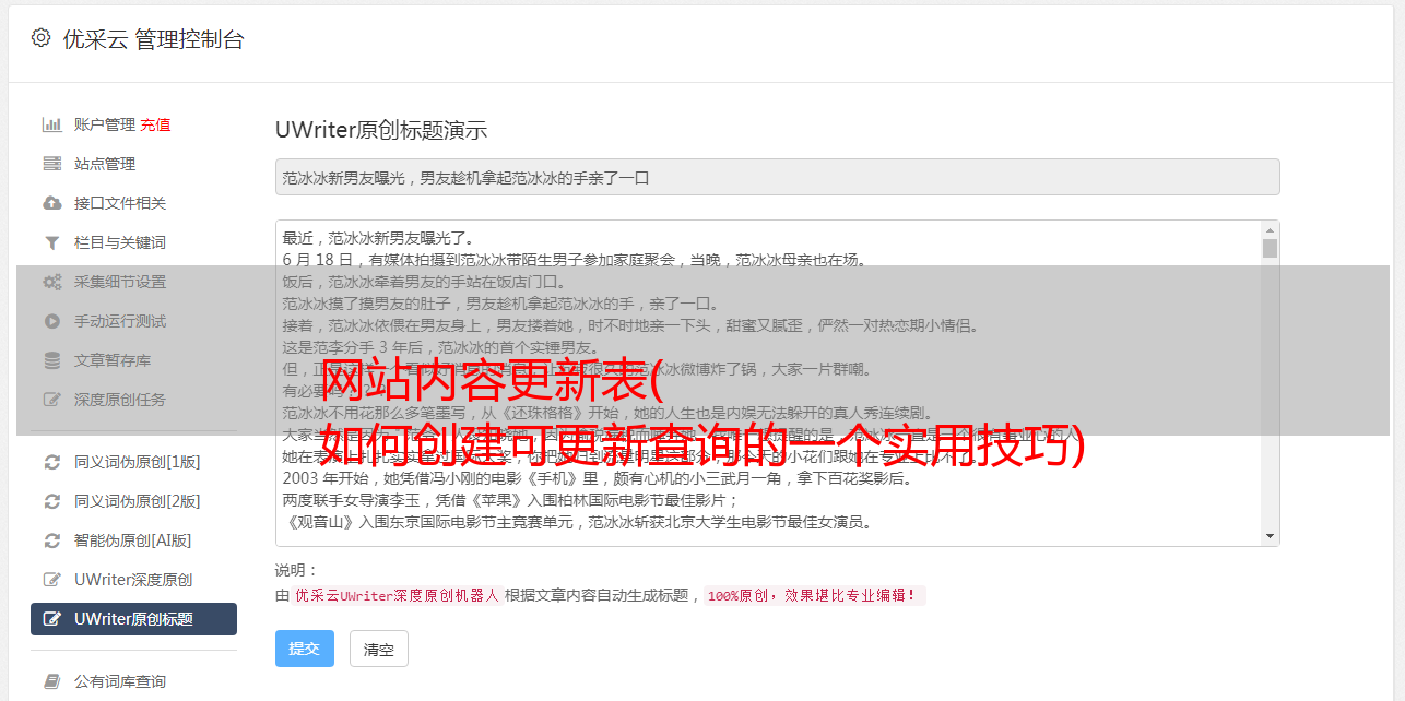 优采云 发布时间: 2021-12-17 22:01网站内容更新表(