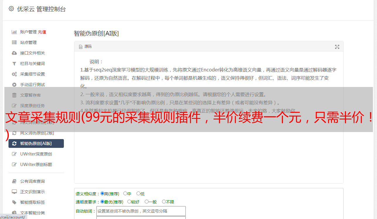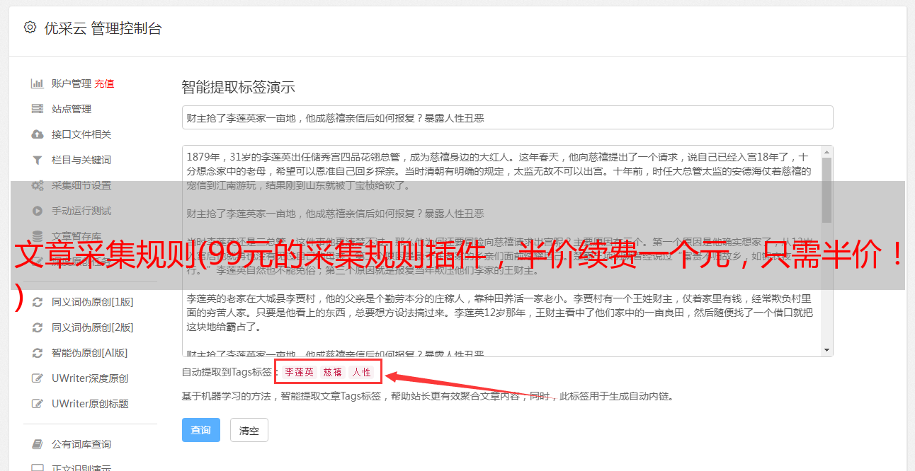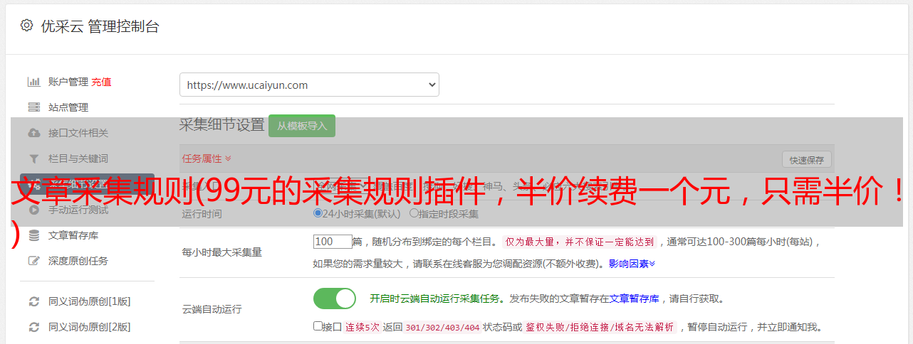 优采云 发布时间: 2021-12-18 00:03文章采集规则(99元的采集规则插件,半价续费一个元,只需半价!