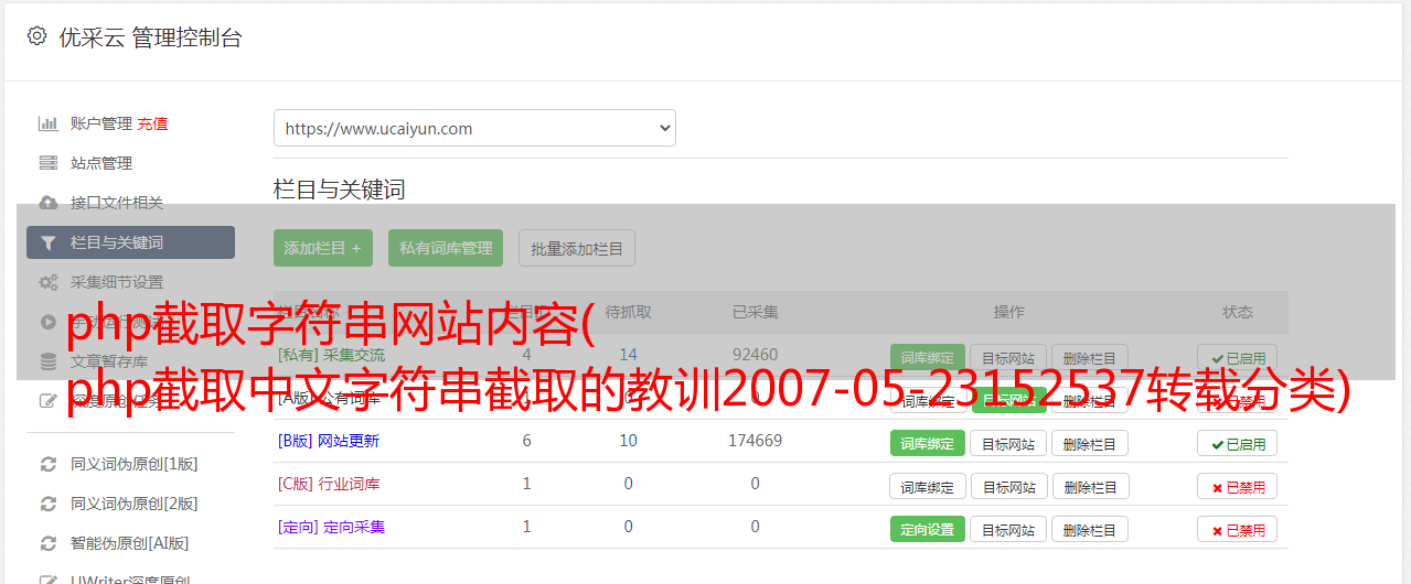 优采云 发布时间: 2021-12-18 01:14php截取字符串网站内容(