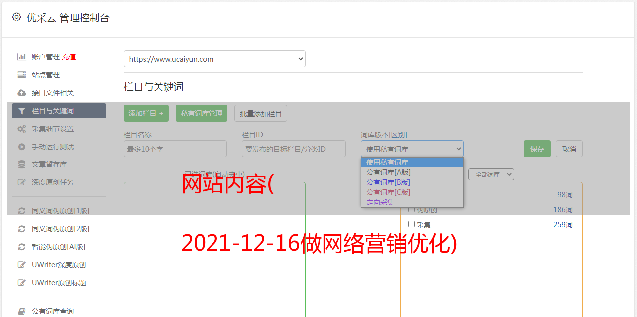 优采云 发布时间: 2021-12-18 09:20网站内容(