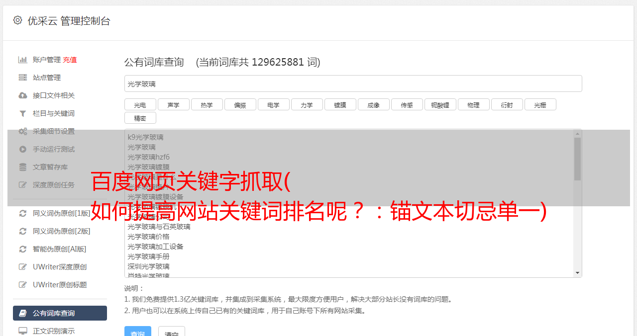 优采云 发布时间: 2021-12-18 09:21百度网页关键字抓取(