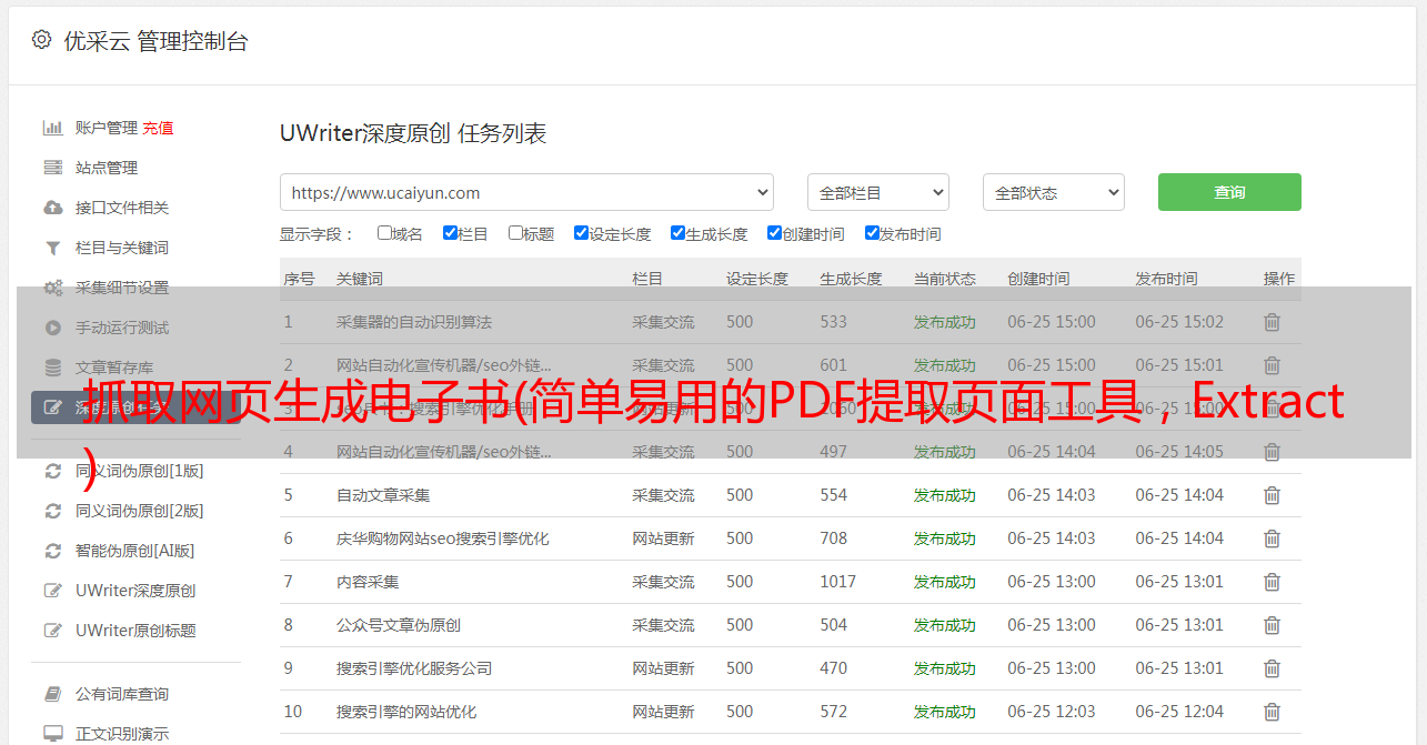 优采云 发布时间: 2021-12-18 12:07抓取网页生成电子书(简单易用的PDF提取页面工具,Extract