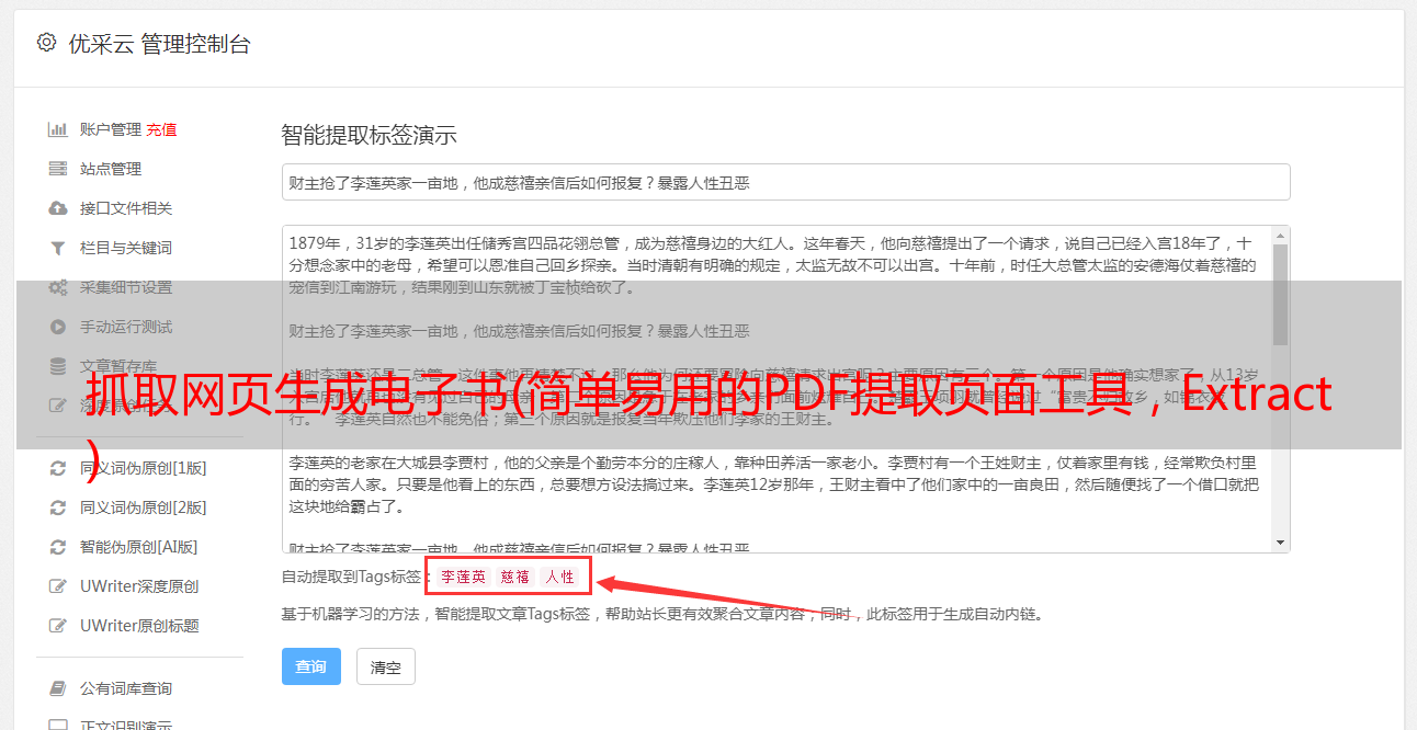 抓取网页生成电子书(简单易用的PDF提取页面工具,Extract )