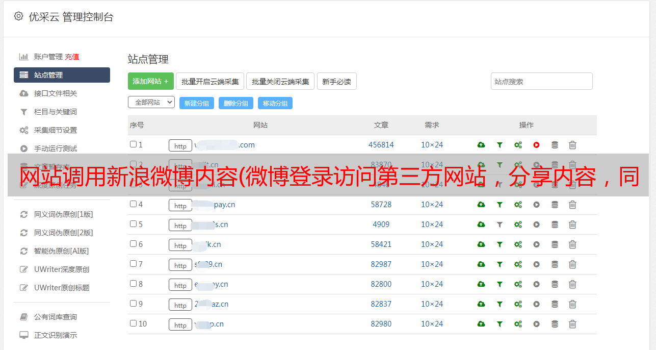 优采云 发布时间: 2021-12-18 14:09网站调用新浪微博内容(微博登录访问第三方网站,分享内容,同步信息教程)