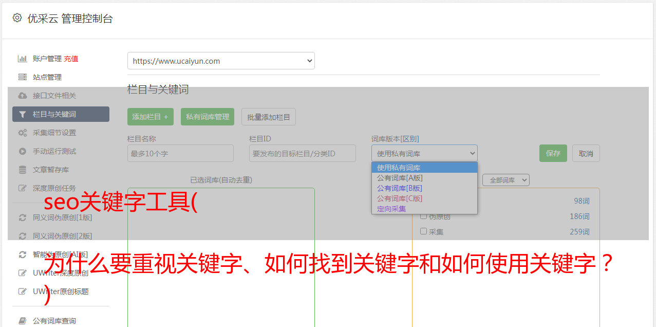 优采云 发布时间: 2021-12-18 18:16seo关键字工具(