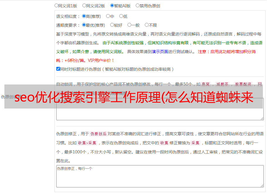 蜘蛛为了保证用户和搜索引擎需要它的存储资源,过滤掉了它爬回没有内容、质量低的页面的功能模块,即过滤模块(1)识别蜘蛛擅长文本和链接识别,不擅长识别图片和链接。识别蜘蛛不擅长识别很可能被过滤为垃圾邮件网站。(2)内容质量基于内容的识别,网页内容也被抓取,与数据库中的内容进行比较,如果与数据库中的内容重复的大部分会被过滤掉。