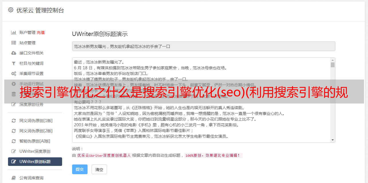 优采云 发布时间: 2021-12-19 06:10搜索引擎优化之什么是搜索引擎优化(seo)(利用搜索引擎的规则提高网站在有关搜索引擎内的自然排名)