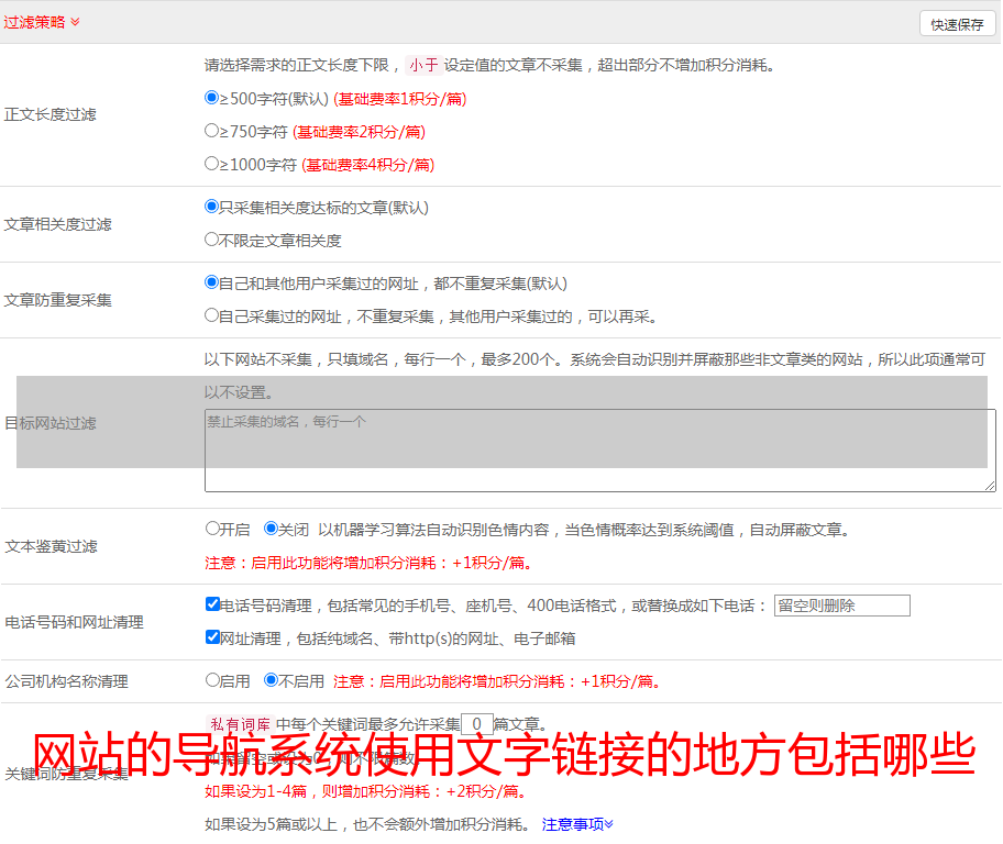 网站的导航系统使用文字链接的地方包括哪些地方?