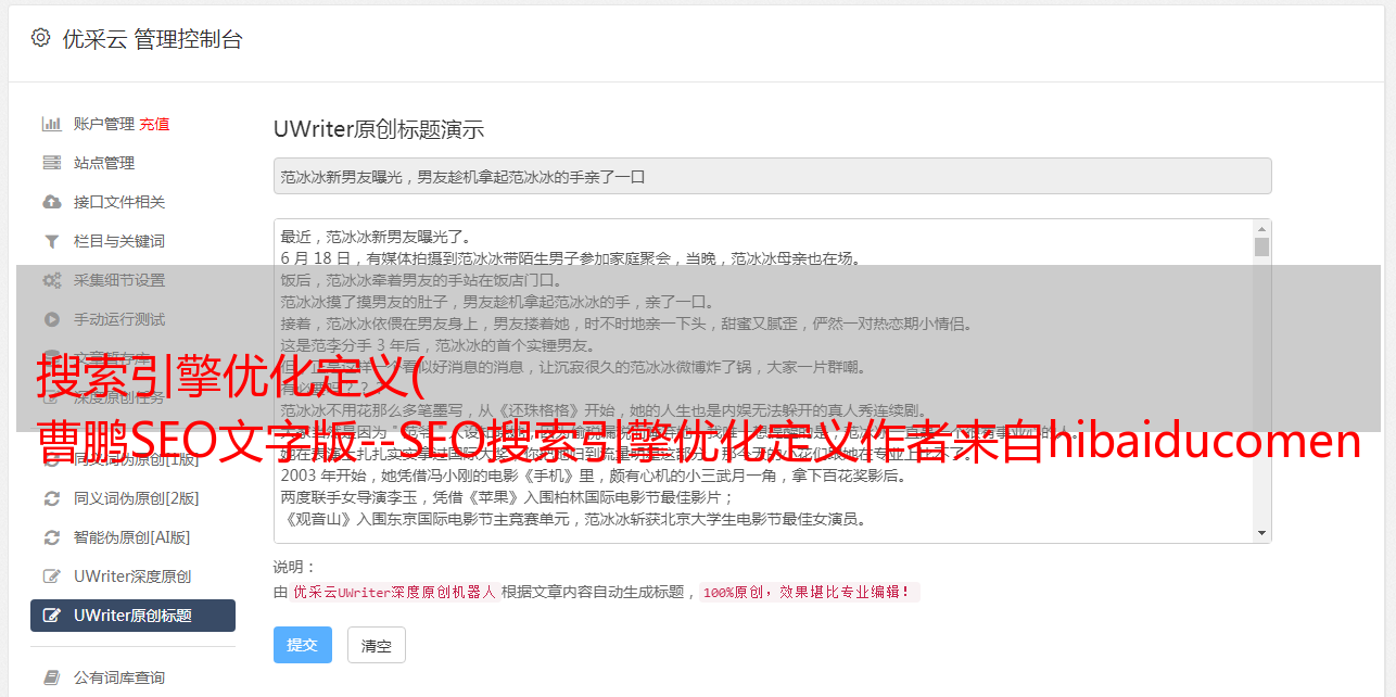 曹鹏SEO文字版--SEO搜索引擎优化定义作者来自hibaiducomenjoy_study就是)