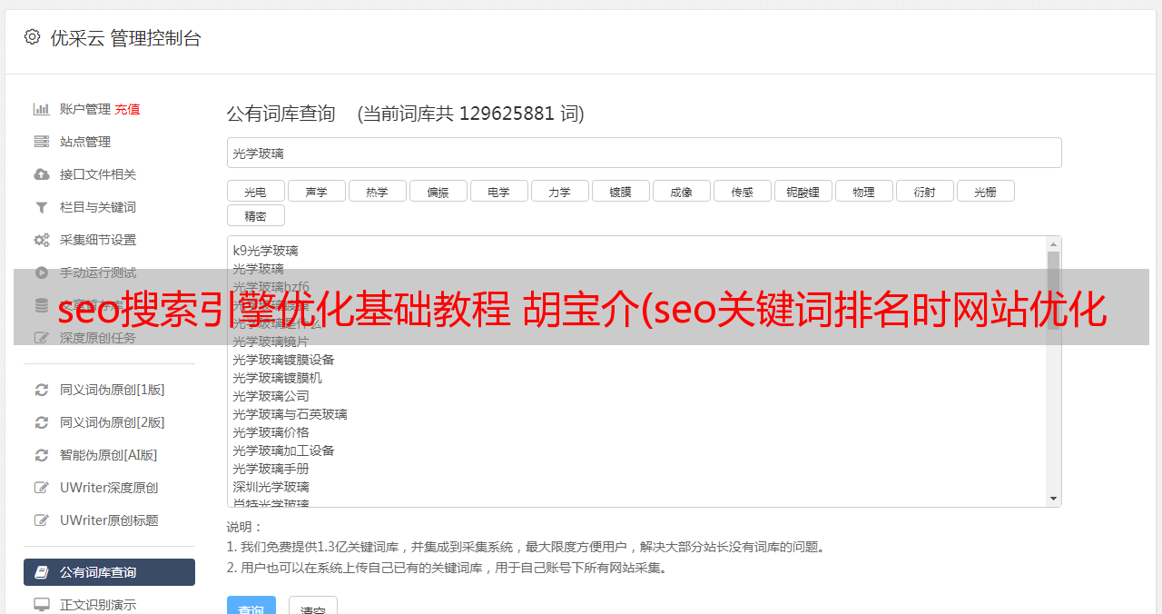 优采云 发布时间: 2021-12-19 12:06seo搜索引擎优化基础教程 胡宝介(seo关键词排名时网站优化的关键所在《排名位置》)