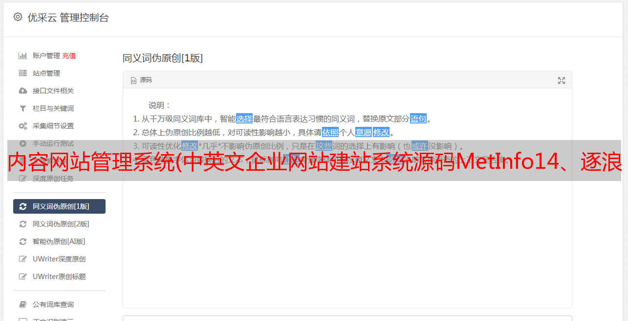 优采云 发布时间: 2021-12-19 15:21内容网站管理系统(中英文企业网站建站系统源码MetInfo14、逐浪CMS6)