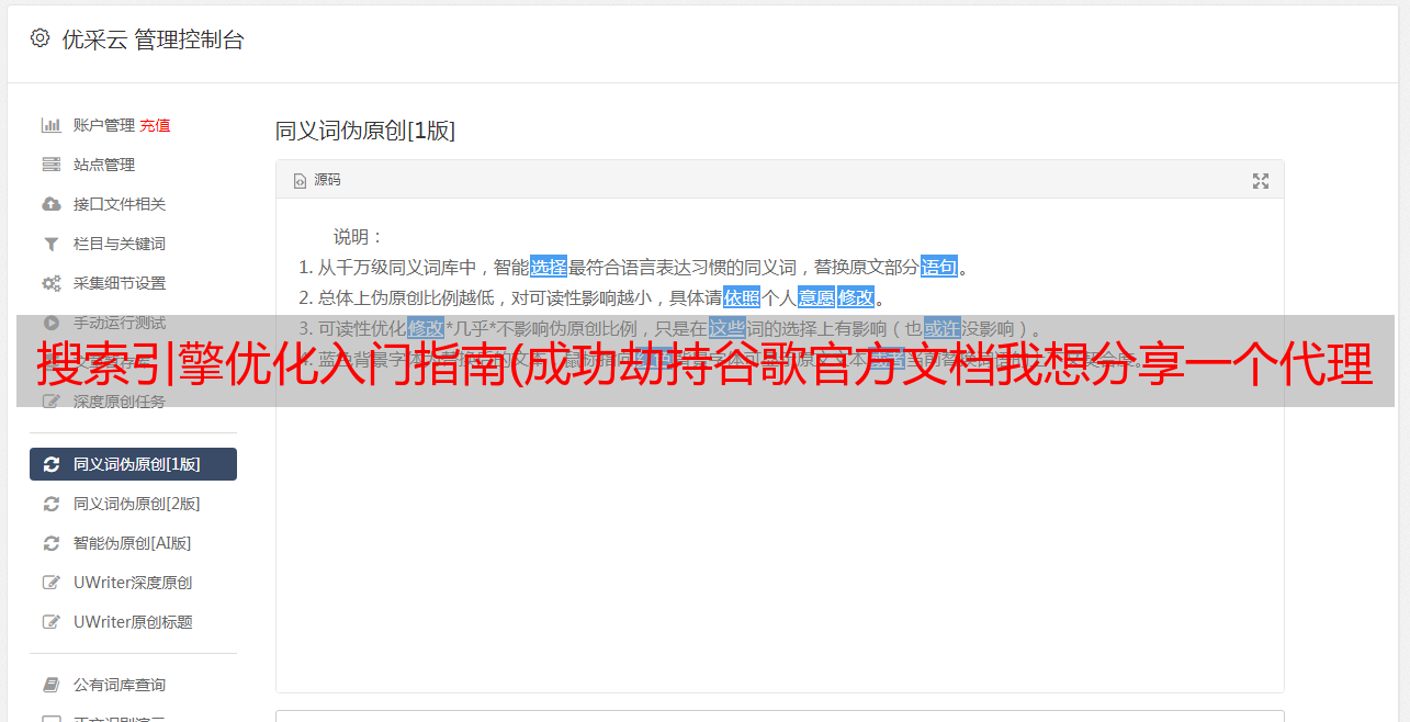 优采云 发布时间: 2021-12-20 03:13搜索引擎优化入门指南(成功劫持谷歌官方文档我想分享一个代理商最近的一个操作尝试)