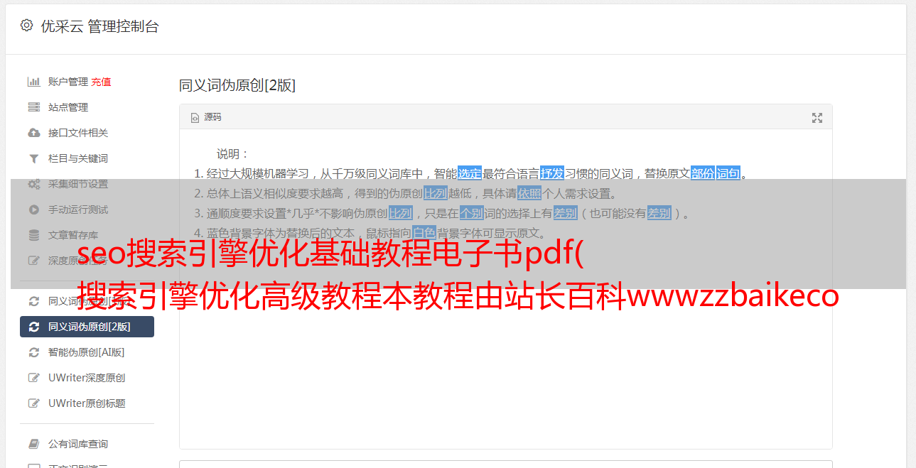 优采云 发布时间: 2021-12-20 15:22seo搜索引擎优化基础教程电子书pdf(