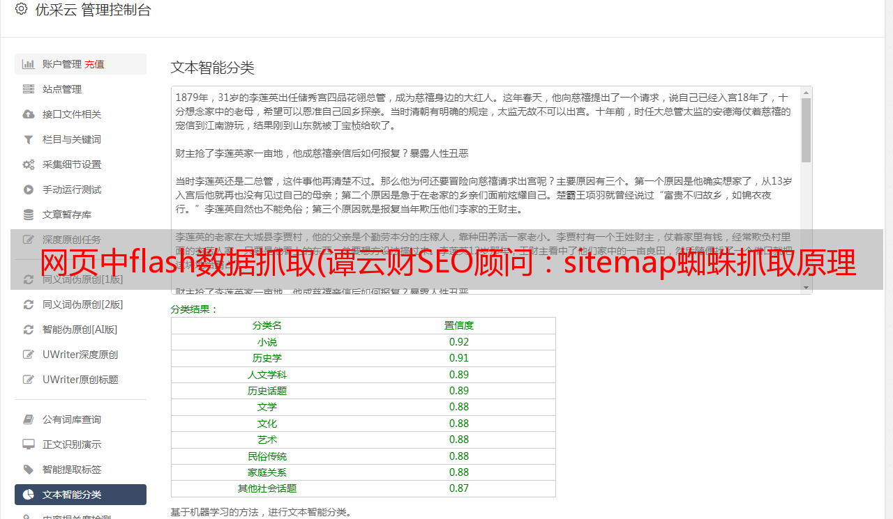 优采云 发布时间: 2021-12-20 16:04网页中flash数据抓取(谭云财SEO顾问:sitemap蜘蛛抓取原理详解百度蜘蛛)