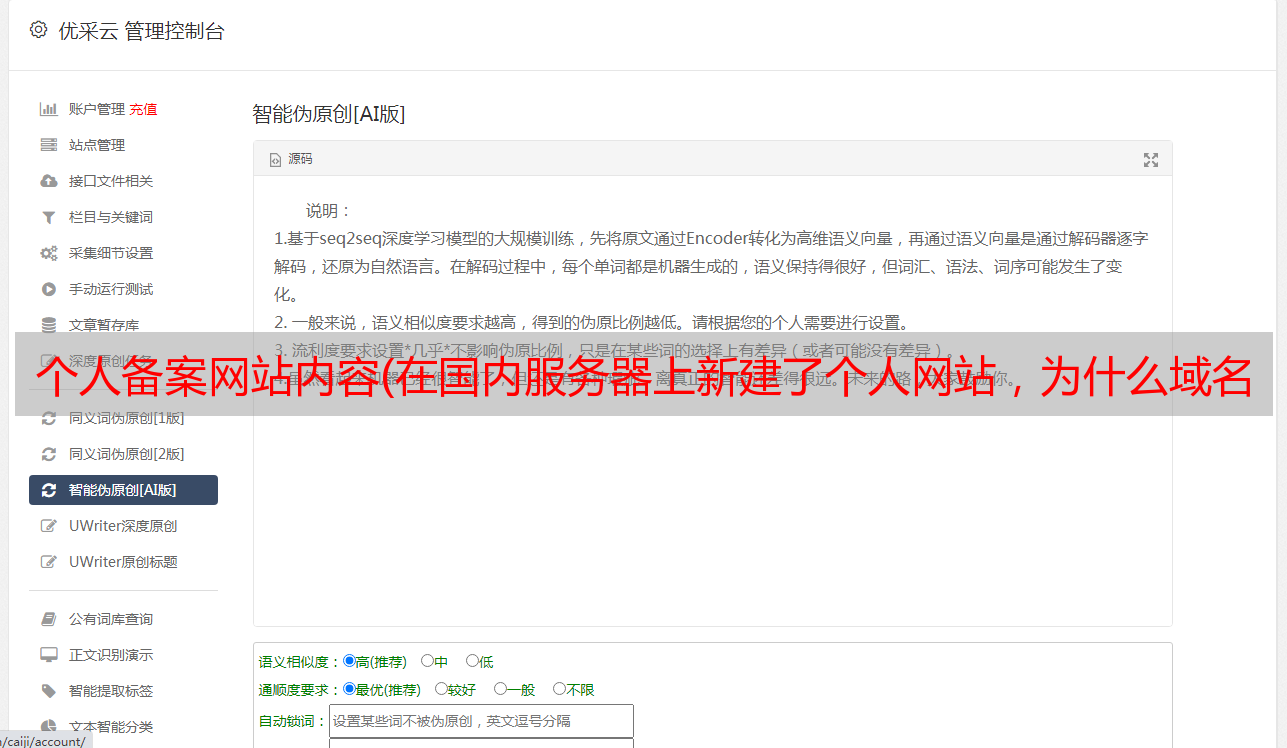 优采云 发布时间: 2021-12-21 13:12个人备案网站内容(在国内服务器上新建了个人网站,为什么域名访问需要备案?)