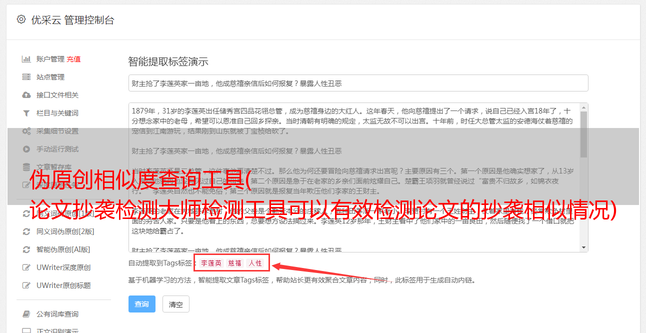 优采云 发布时间: 2021-12-22 07:16伪原创相似度查询工具(
