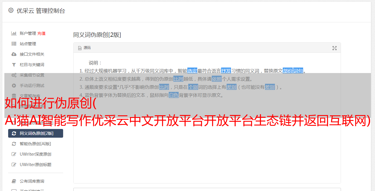 如何进行伪原创( Ai猫AI智能写作优采云中文开放平台开放平台生态链并返回互联网)