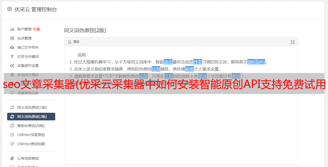 seo文章采集器(优采云采集器中如何安装智能原创API支持免费试用(组图))