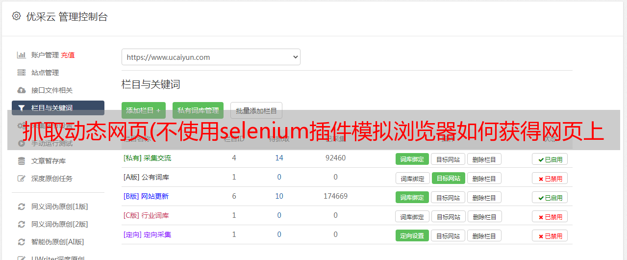 优采云 发布时间: 2021-12-22 18:22抓取动态网页(不使用selenium插件模拟浏览器如何获得网页上的动态加载数据)