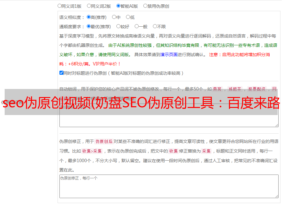 seo伪原创视频(奶盘SEO伪原创工具:百度来路:44~77)