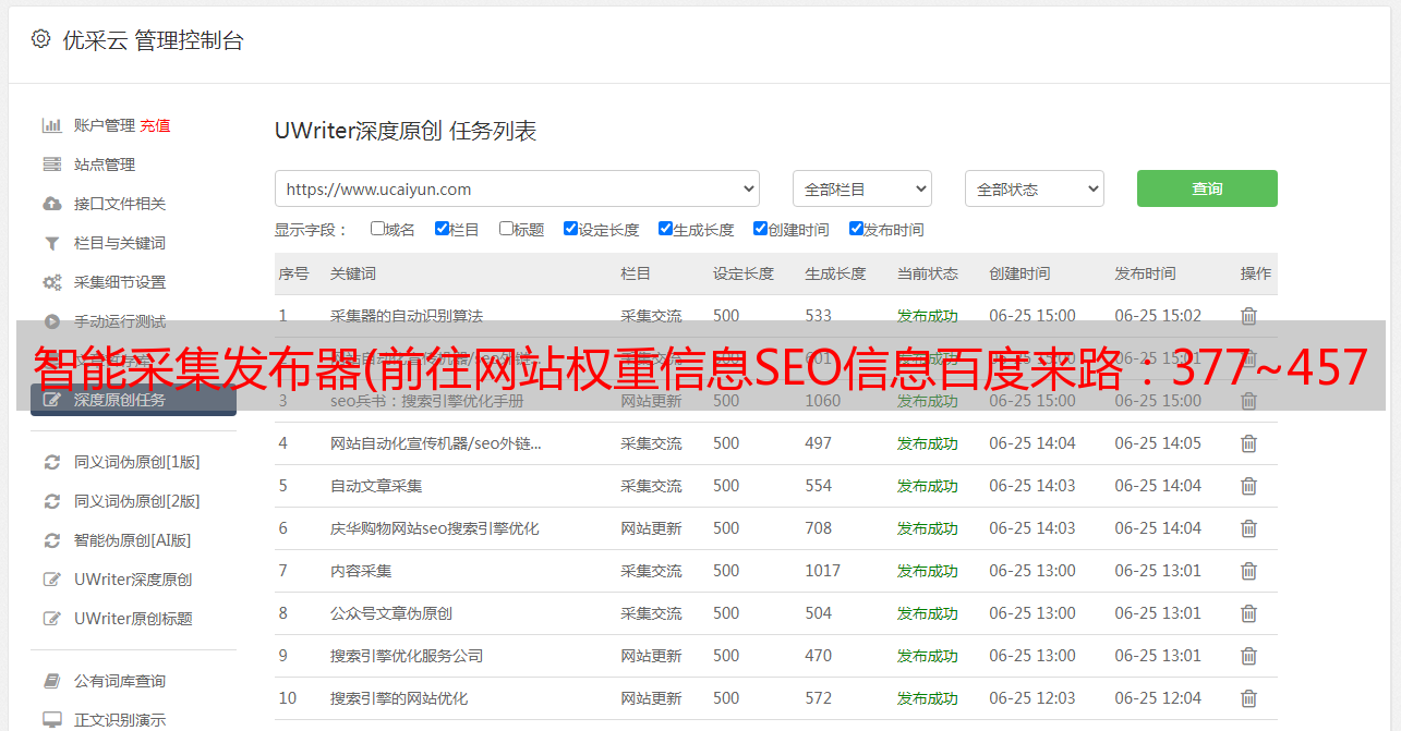 智能采集发布器(前往网站权重信息SEO信息百度来路:377~457IP移动来路)