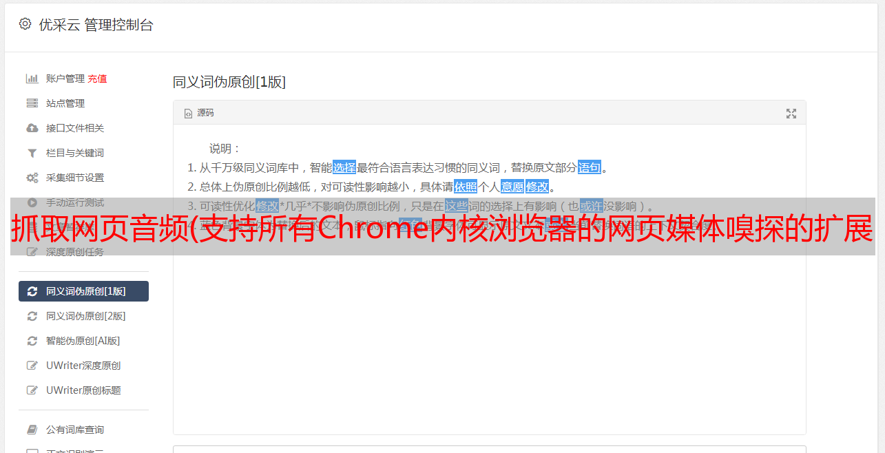 优采云 发布时间: 2021-12-23 02:02抓取网页音频(支持所有Chrome内核浏览器的网页媒体嗅探的扩展(图))