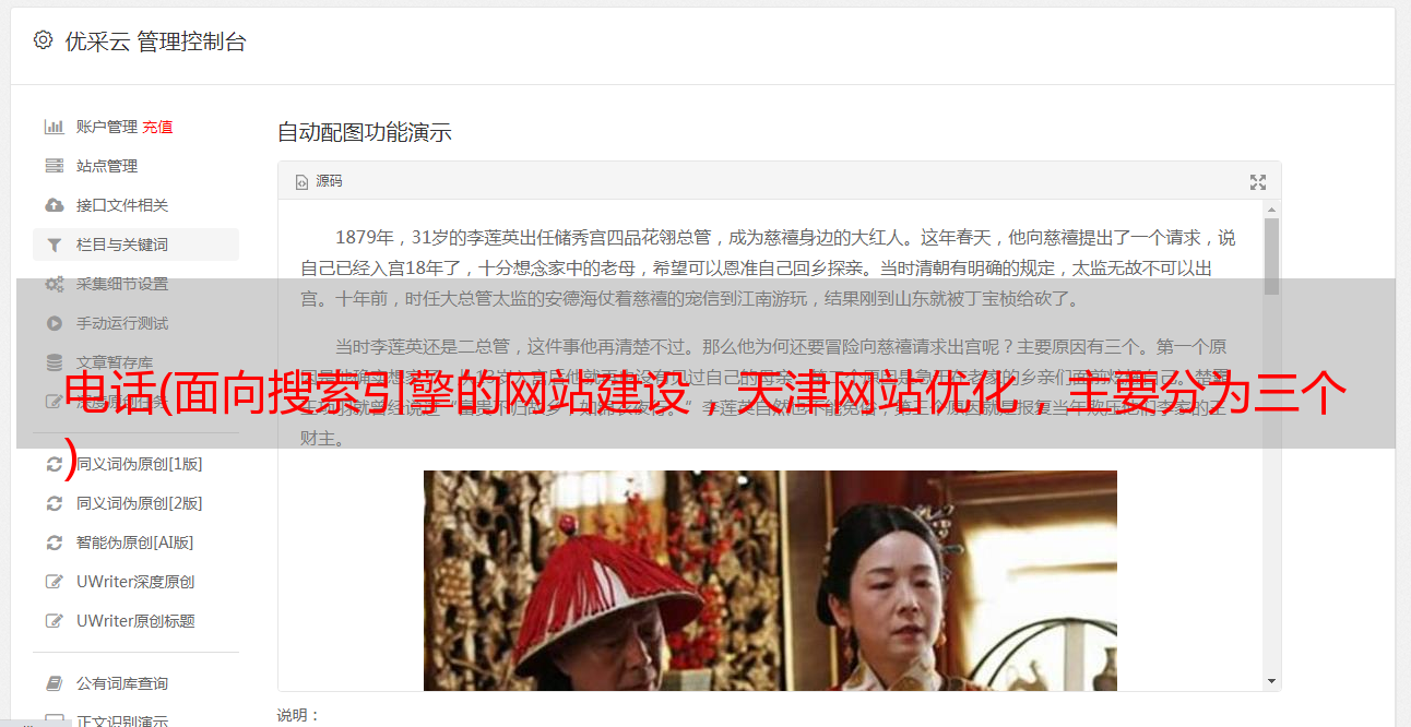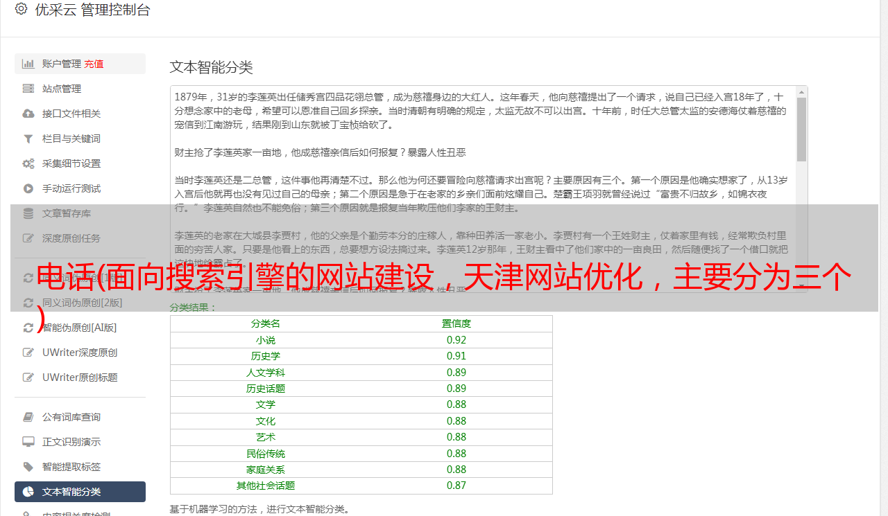 优采云 发布时间: 2021-12-23 04:16电话(面向搜索引擎的网站建设,天津网站优化,主要分为三个