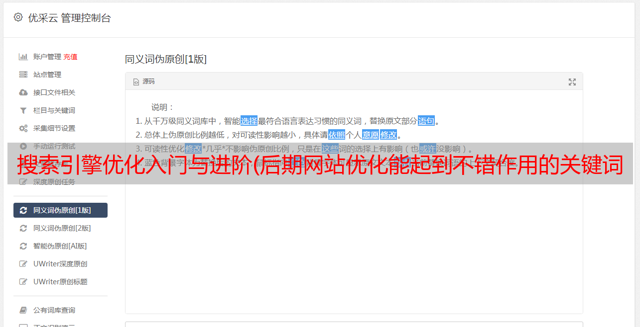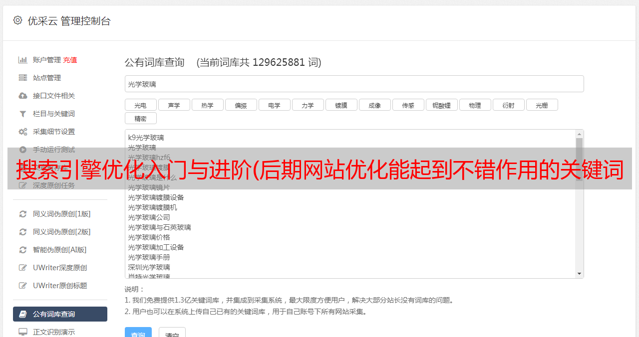 优采云 发布时间: 2021-12-23 06:04搜索引擎优化入门与进阶(后期网站优化能起到不错作用的关键词,你知道吗?)