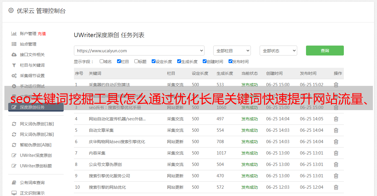 优采云 发布时间: 2021-12-23 06:18seo关键词挖掘工具(怎么通过优化长尾关键词快速提升网站流量、权重(图))