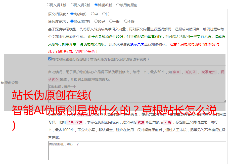 站长伪原创在线( 智能AI伪原创是做什么的?草根站长怎么说 )