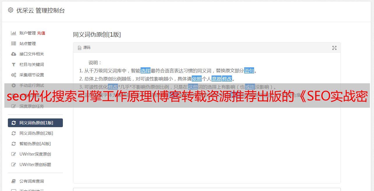 优采云 发布时间: 2021-12-23 11:12seo优化搜索引擎工作原理(博客转载资源推荐出版的《SEO实战密码》(图))
