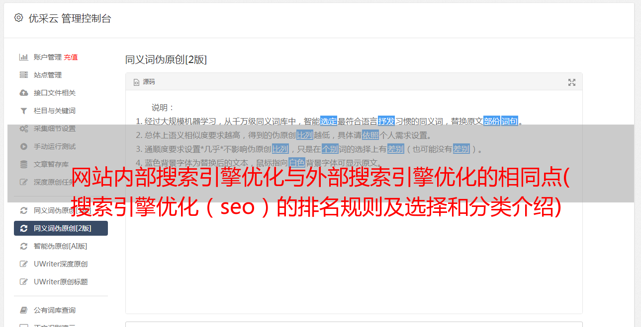 网站内部搜索引擎优化与外部搜索引擎优化的相同点( 搜索引擎优化(seo)的排名规则及选择和分类介绍)