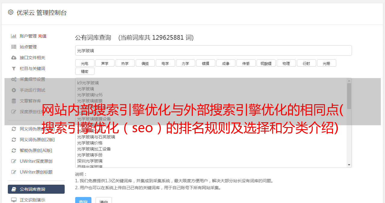 优采云 发布时间: 2021-12-23 17:18网站内部搜索引擎优化与外部搜索引擎优化的相同点(