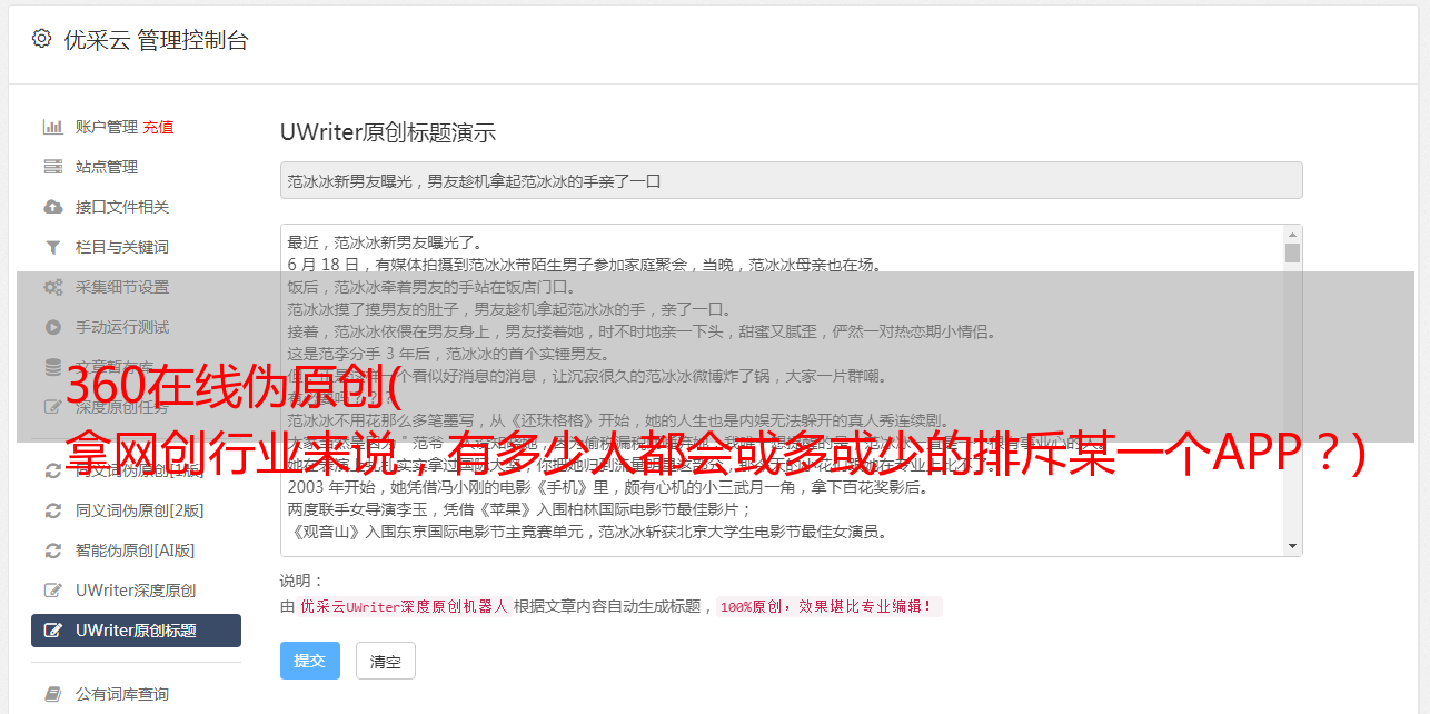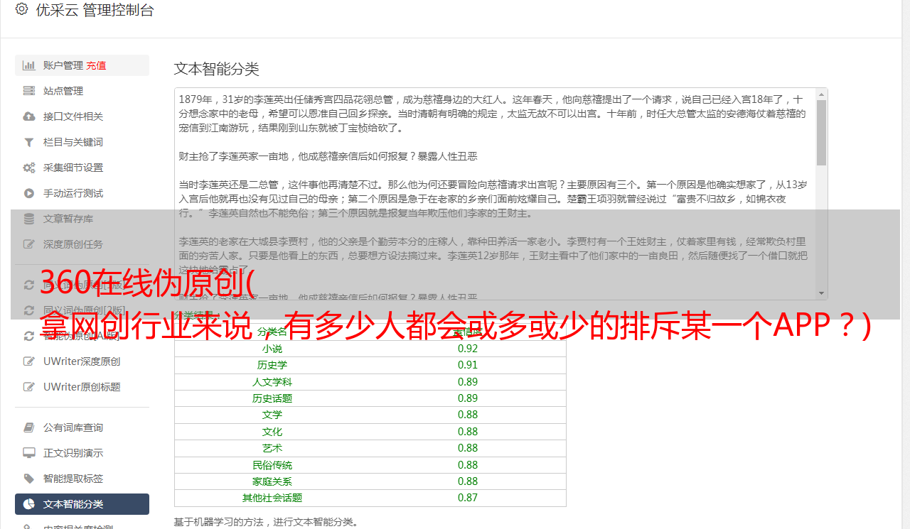 优采云 发布时间: 2021-12-23 18:02360在线伪原创(