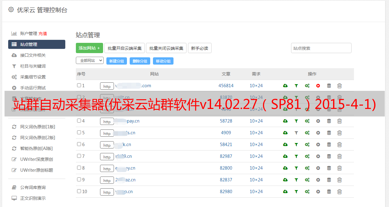 站群自动采集器(优采云站群软件v14.02.27(SP81)2015-4-1)