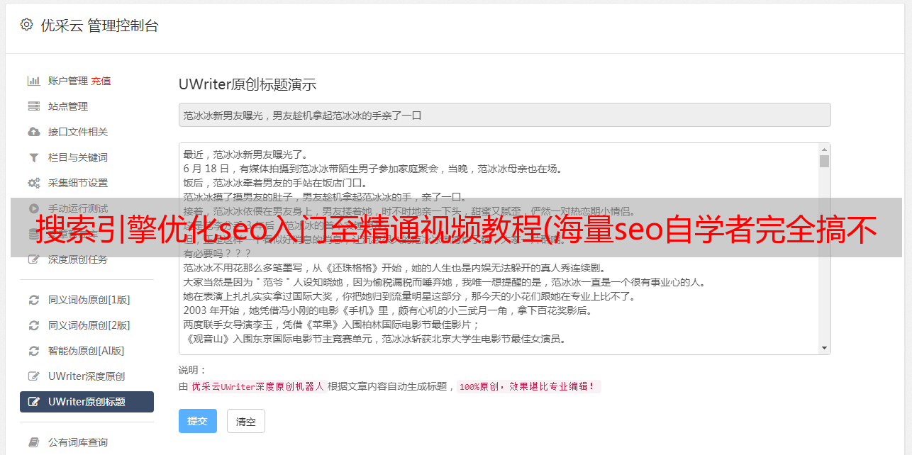 优采云 发布时间: 2021-12-23 19:05搜索引擎优化seo入门至精通视频教程(海量seo自学者完全搞不清哪些教程是真正有价值的?)