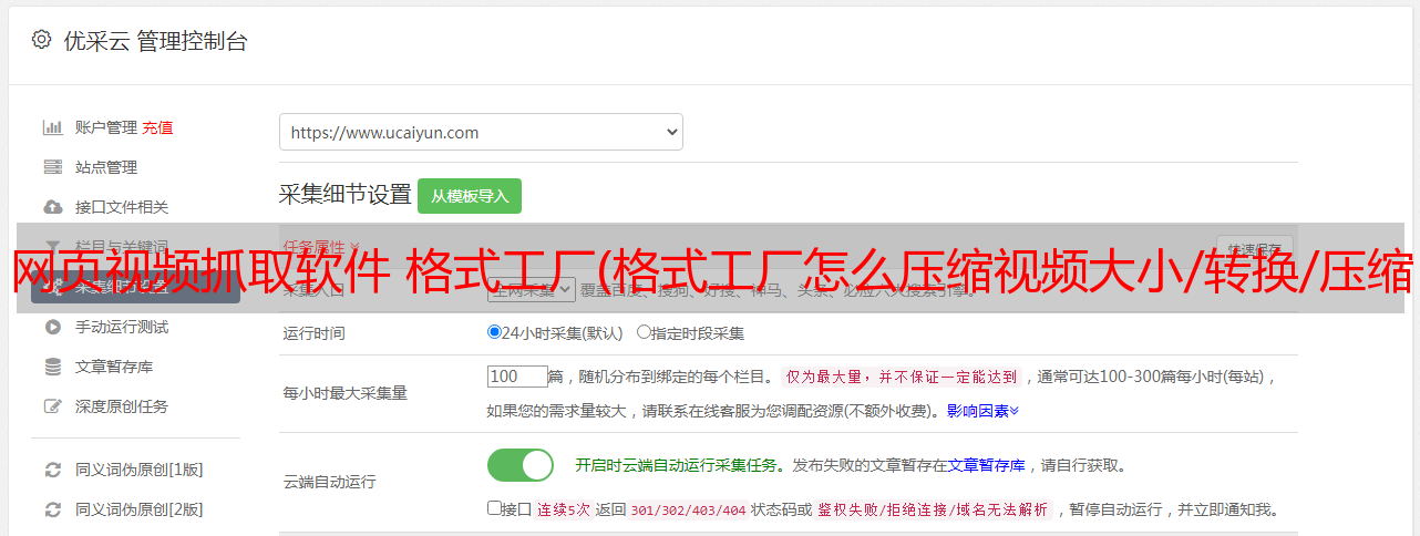 优采云 发布时间: 2021-12-24 00:12网页视频抓取软件 格式工厂(格式工厂怎么压缩视频大小/转换/压缩/多媒体/psp)