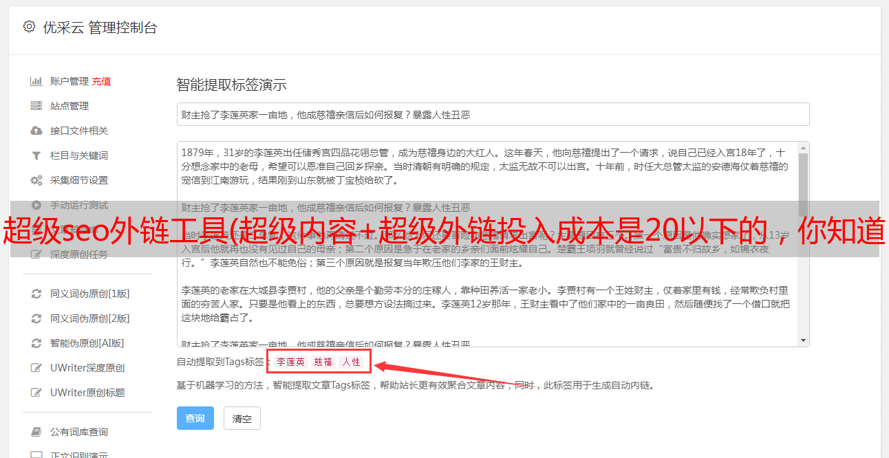 优采云 发布时间: 2021-12-24 04:23超级seo外链工具(超级内容+超级外链投入成本是20以下的,你知道吗?