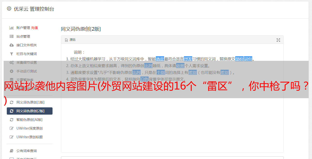 优采云 发布时间: 2021-12-24 08:02网站抄袭他内容图片(外贸网站建设的16个“雷区”,你中*敏*感*词*了吗?