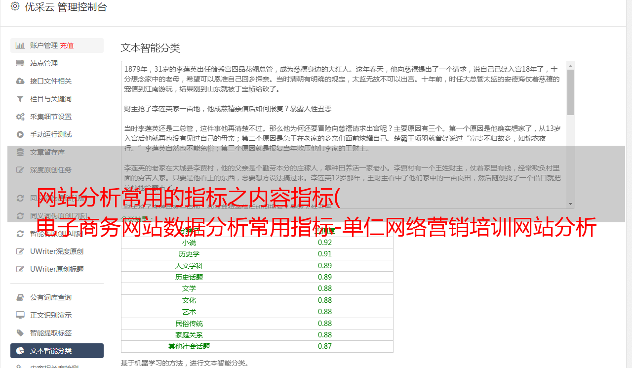 优采云 发布时间: 2021-12-24 10:12网站分析常用的指标之内容指标(