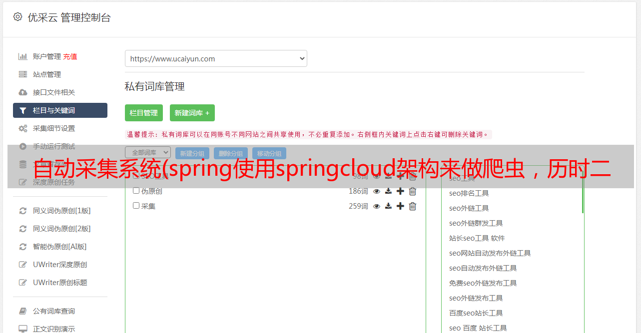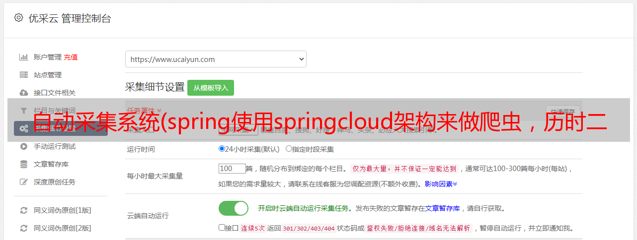 优采云 发布时间: 2021-12-24 11:00自动采集系统(spring使用springcloud架构来做爬虫,历时二十多天,终于搞定)
