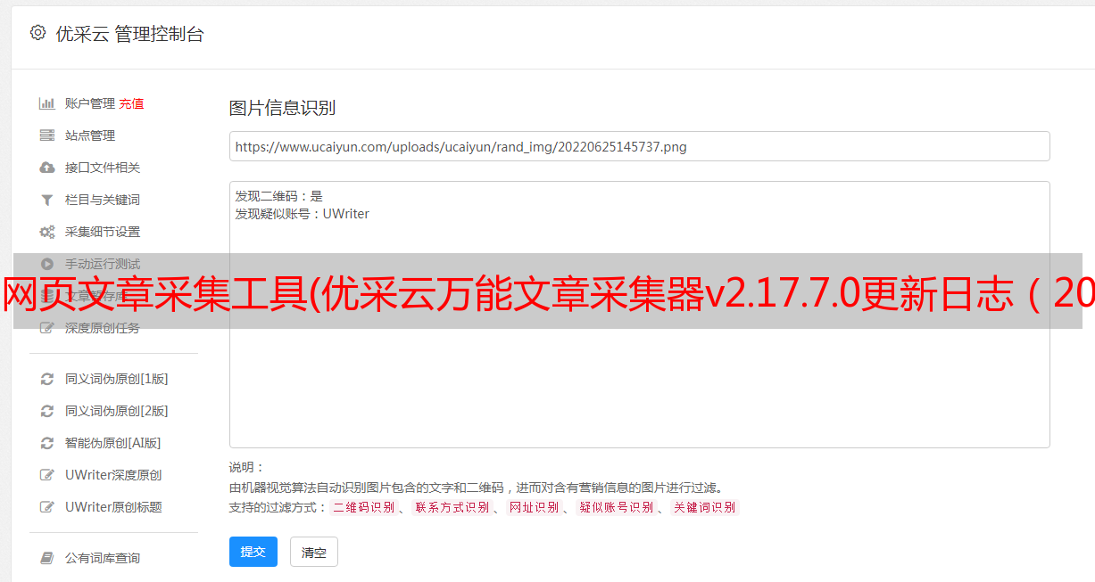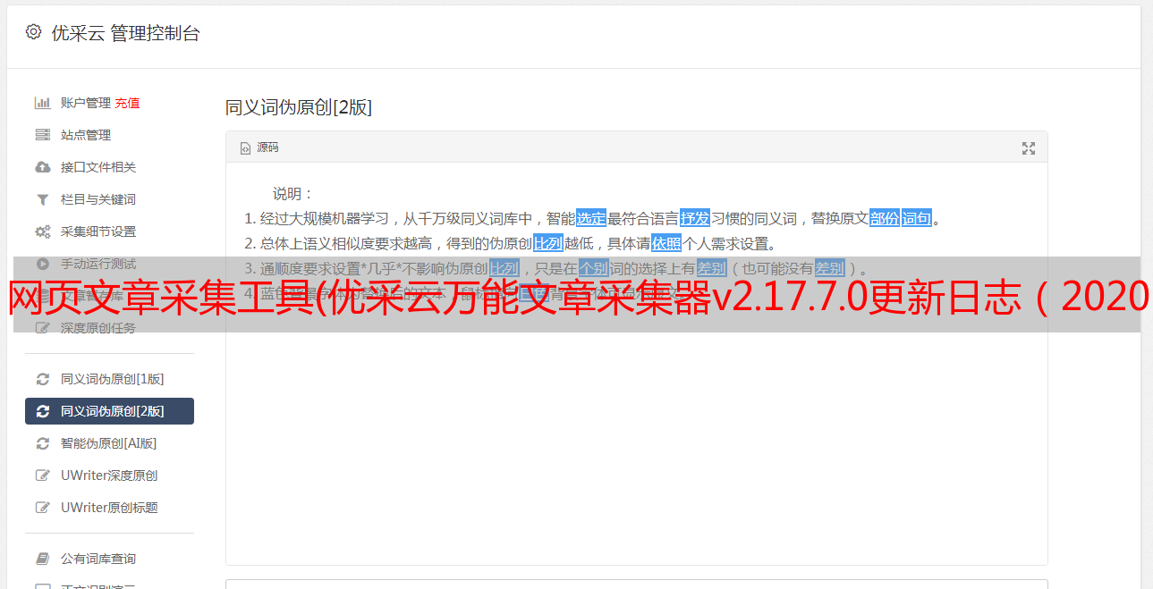 更新日志优采云万能文章采集器 v2.17.7.0 更新日志(2020-4-8)