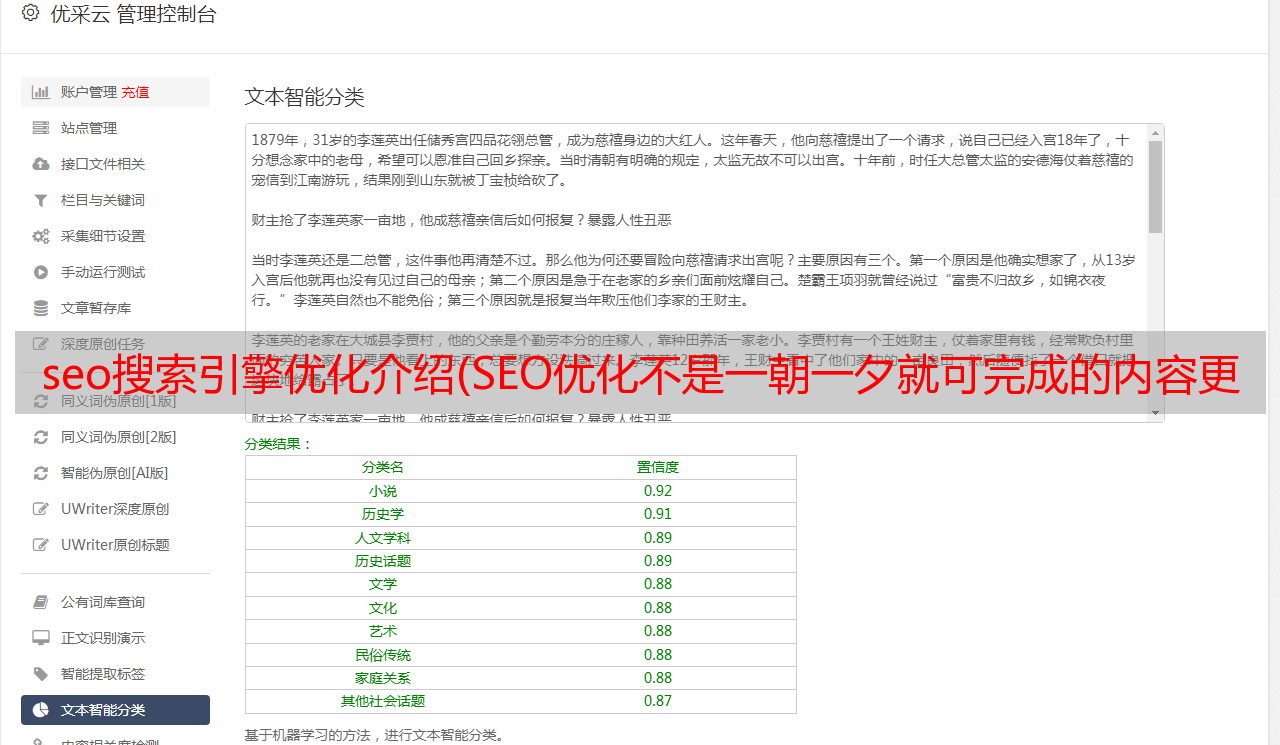 优采云 发布时间: 2021-12-24 14:02seo搜索引擎优化介绍(SEO优化不是一朝一夕就可完成的内容更新和优化状况)
