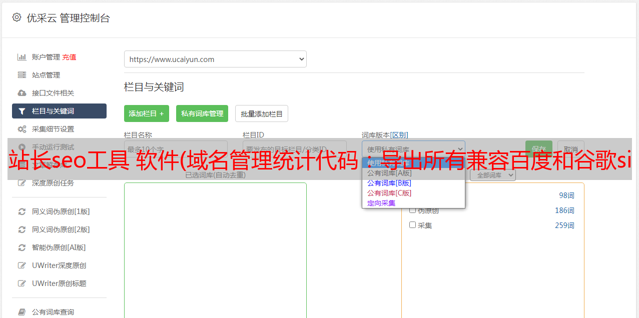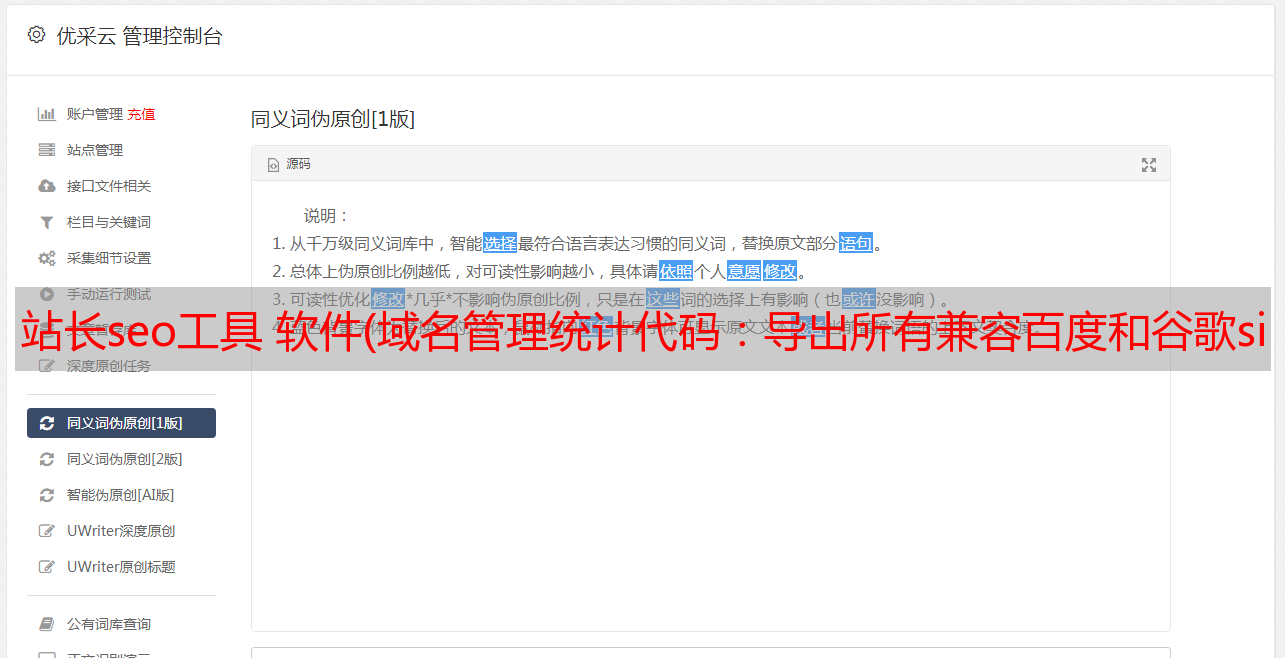 优采云 发布时间: 2021-12-24 16:05站长seo工具 软件(域名管理统计代码:导出所有兼容百度和谷歌sitemap效果越好)