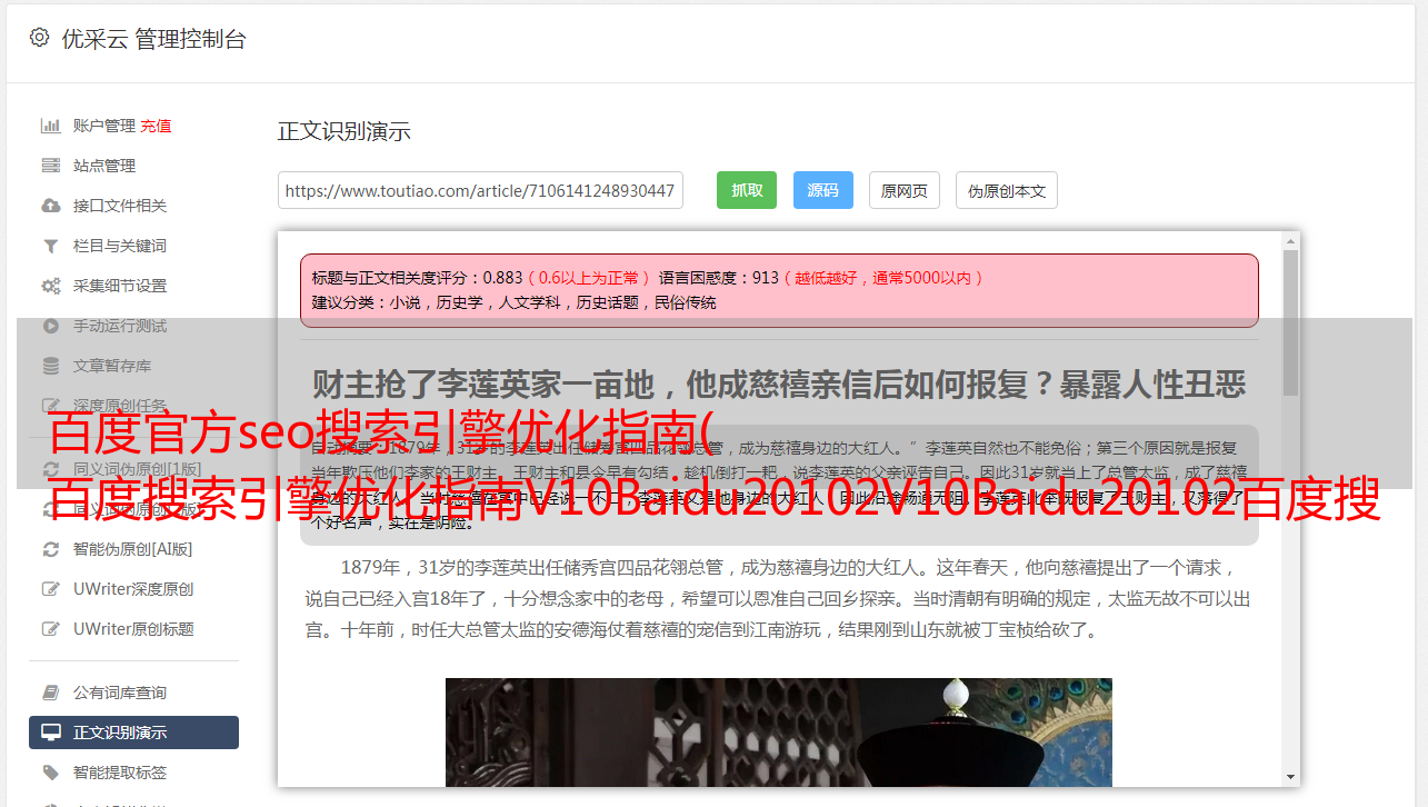 优采云 发布时间: 2021-12-24 16:08百度官方seo搜索引擎优化指南(