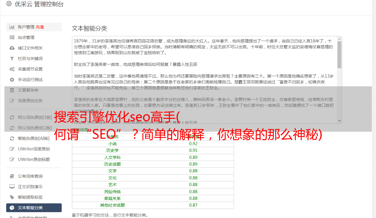 优采云 发布时间: 2021-12-24 20:01搜索引擎优化seo高手(