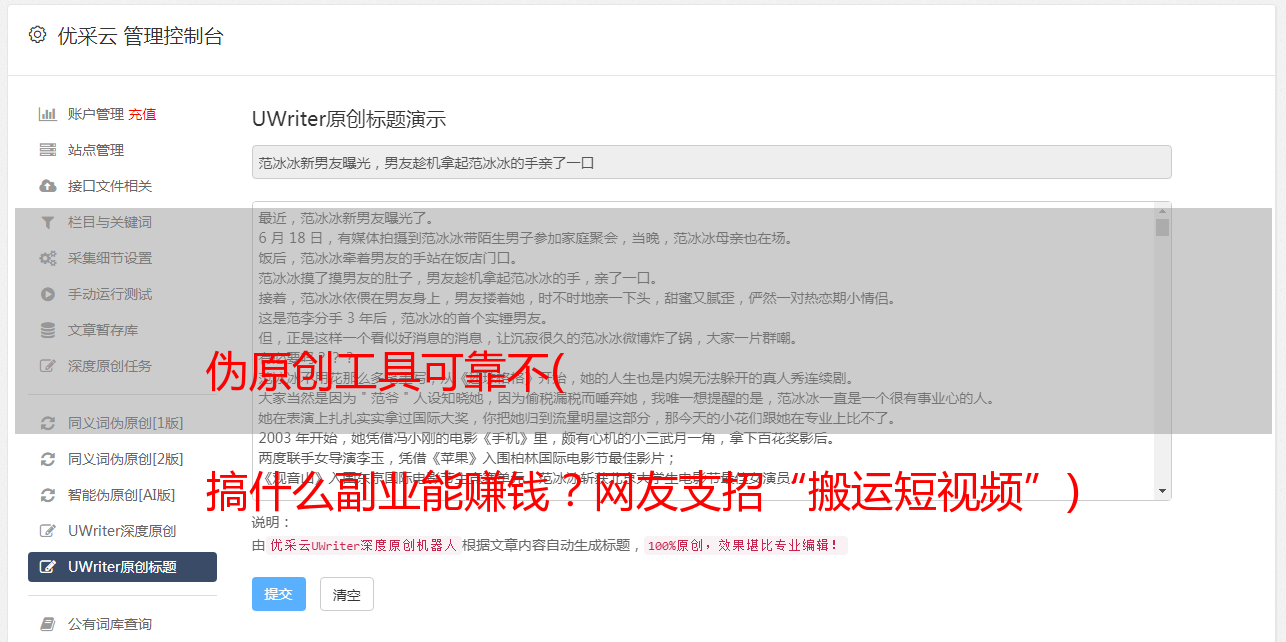 伪原创工具可靠不( 搞什么副业能赚钱?网友支招“搬运短视频”)